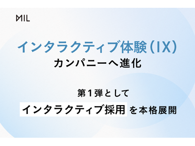 インタラクティブ体験でデジタルコミュニケーションを変革するMIL株式会社(読み:ミル、本社:東京都新宿区、代表取締役:光岡敦)は、この度、事業領域の拡大に伴うリブランディングを実施したことをお知らせします。当社が創業以来、市場の変化に対応しながら磨き上げてきた「体験とデータを成果に繋ぐ」という提供価値を、新たに「インタラクティブ体験(Interactive Experience、以下「IX」)」として再定義し、リーディングカンパニーとして企業のDX(デジタルトランスフォーメーション)とCX(顧客体験)の向上をさらに加速させてまいります。その第一弾として、既に導入企業で内定承諾率1.3倍などの成果を上げている新卒採用の新しいスタンダード「インタラクティブ採用」を本格展開し、企業の課題解決を推進します。