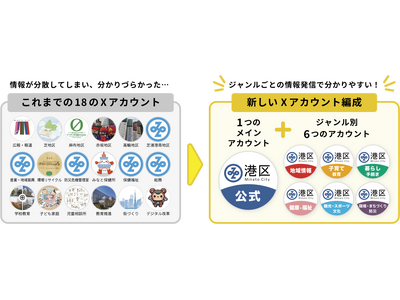 港区は、これまで各部署ごとに18のXアカウントを運用してきましたが、情報が分散して分かりにくいという課題がありました。そこで、区民等が必要な情報を迷わず取得できるようにするため、