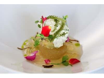 沖縄の健康長寿を支えてきた島野菜や豆腐料理に着目し、フレンチの技法を用いて、テラスならではのウェルネスキュイジーヌに仕立てました。ソースには昆布や椎茸を使用、植物由来の素材だけで滋味豊かに仕上げた消化にもやさしい一品です。