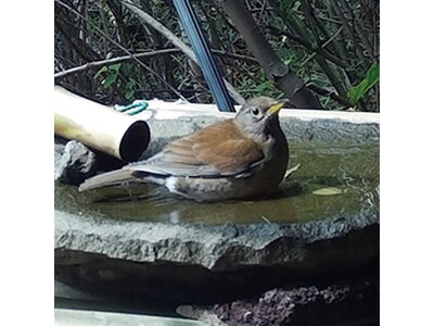 「循環式バードバス」は、野鳥が水を飲んだり水浴びをしたりするために頻繁に水辺を訪れる習性を活かし、緑地内に手軽に水場を設けることで、野鳥の訪れる機会を増やし、企業敷地内の生物多様性を向上させるアイテムです。「循環式バードバス」の詳細については、