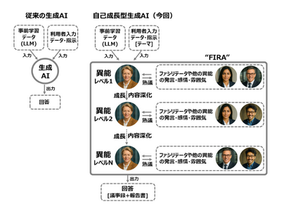 株式会社ハピネスプラネット(以下、ハピネスプラネット)と株式会社日立製作所(以下、日立)は、複数のAIエージェントが議論することで、自律的により深い洞察や創造的な視点を生み出していく自己成長型生成AIを共同開発しました。また、ハピネスプラネットは、開発した生成AIを活用した自己成長型AIサービス「Happiness Planet FIRA*1」(以下、FIRA(フィーラ))を、8月26日(火)より提供開始します。