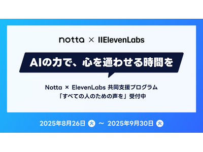 AI文字起こしサービスの「Notta」と、AI音声合成技術のパイオニアである「ElevenLabs」は、2025年8月26日(火)にコミュニケーションに困難を抱える方々を支援する共同プログラム「すべての人のための声を(Voices for All)」の発足を発表します。