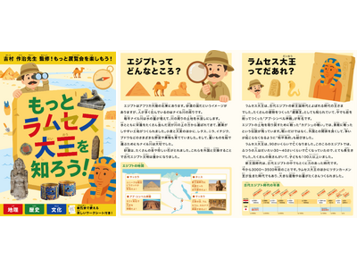 お子さまに本展を楽しんでいただくための内容となっており、エジプトの歴史やラムセス大王の基礎知識、本展のおすすめの展示品についての解説などを盛り込み、夏休みの自由研究にもご活用いただけます。