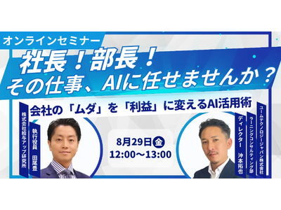 本セミナーでは、こうした業務の“ムダ”を可視化し、AIを使って「利益を生み出す業務」へと転換させる具体的な手法を、実際の成功事例を交えて解説します。