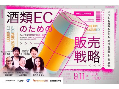 WorldShopping BIZを提供する株式会社ジグザグ(本社:東京都渋谷区、代表取締役:仲里一義)は、株式会社これから、株式会社マクロジ、W2株式会社、narrative株式会社をお招きし、「クラフトビール・日本酒…売れるECの共通点は?酒類ECのための販売戦略」をテーマとした無料オンラインセミナーを、2025年9月11日(木)に開催いたします。