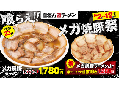 「喜多方ラーメン坂内」をはじめ国内外で多様なジャンルの飲食店事業を手掛ける株式会社麺食(本社: 東京都品川区、代表取締役社長:中原 誠) は、「喜多方ラーメン坂内」にて『メガ焼豚祭』を2025年9月2日(火)から9月12日(金)まで実施いたします。