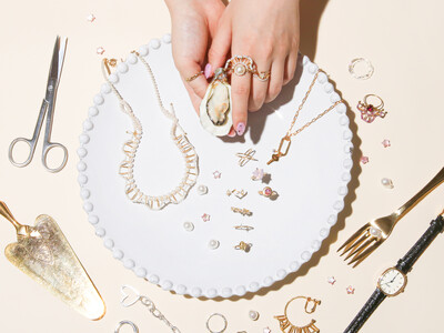 洋服の型紙(パターン)から着想したフリル・プリーツのシリーズを代表作とし、クラシカルな要素を現代的に昇華させたジュエリーを提案。繊細な細工と遊び心のあるモチーフづかいが特徴で、パールなどを用いた軽やかなデザインは、エレガントさと独創性を兼ね備えています。