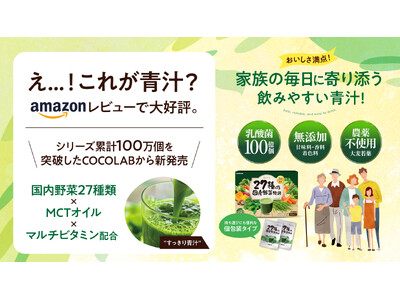 365日飲んでほしいから、完全国産。九州産大麦若葉×沖縄産黒糖を使った『青汁生活(R)』が、シリーズ累計100万個を突破したCOCOLABから新発売