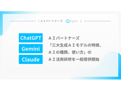 株式会社エージェント(本社:東京都渋谷区、代表取締役:四宮浩二 証券コード:7098)は、AI導入総合支援サービス「AIパートナーズ」において、主要生成AIツールを実践的に学ぶ研修コンテンツ「活用編:三大生成AIモデルの特徴、AIの種類、使い方」を本日リリースしました。
