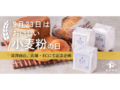 日本最大級の製菓・製パン材料、器具専門店として創業106年の株式会社富澤商店は、9月23日の「おいしい小麦粉の日」に合わせ、全国の直営店および公式オンラインショップにて、記念キャンペーンを開催いたします。直営店・公式オンラインショップにて、人気の小麦粉を10%オフでご提供。さらに公式オンラインショップでは小麦粉に関連したアイテムをプレゼントするキャンペーンを実施いたします。パンやお菓子作りを楽しむ方に向けて、より小麦粉の魅力を体験いただける企画をお届けします。