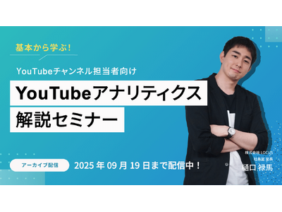 動画を起点として2,000社以上の企業にコンサルティング事業を展開する株式会社LOCUS(東京都千代田区、代表取締役 瀧良太)は、「基本から学ぶ!YouTubeアナリティクス解説」のセミナー動画の期間限定(~2025年9月19日(金)まで)配信を開始しました。