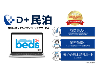 「D+ 民泊」は、サイトコントローラー「Beds24」と連携する、民泊施設向けダイナミックプライシングサービスです。