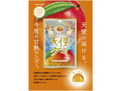 ・名称 天使のグミ 褒美の濃厚甘熟マンゴー味・価格 170円(税抜き)・内容量 40g・賞味期限 300日・発売日 2025年8月25日
