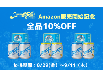 株式会社WAKAZE(本社:東京都世田谷区、代表取締役:稲川琢磨)が展開するカリフォルニア発スパークリング日本酒ブランド「SummerFall」は、2025年8月29日(金)9:00から9月11日(木)23:59まで開催される「Amazonスマイルセール」にて、全商品10%OFFで販売いたします。