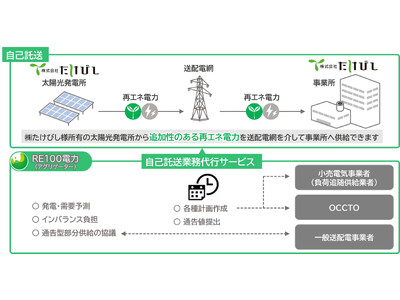 RE100電力株式会社(本社:東京都中央区、CEO:黒淵 誠二、以下「RE100電力」)は、株式会社たけびし(本社:京都市右京区、代表取締役社長:岡垣 浩志、以下「たけびし」)が所有する太陽光発電所から、遠隔地にある本社へ電力を供給する自己託送*1に関し、「自己託送業務代行サービス」*2の提供を開始いたしました。
