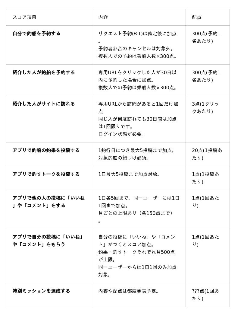 アングラーズアプリや釣船予約を利用することで獲得できるスコアです。