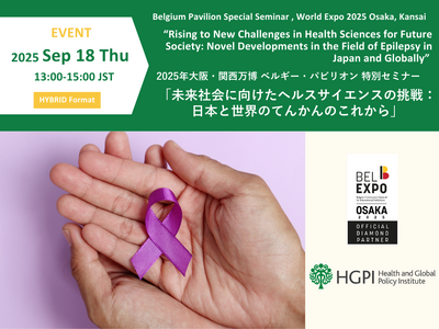日本医療政策機構(HGPI: Health and Global Policy Institute)(事務局:東京都千代田区、代表理事:乗竹 亮治)は、2025年9月18日(木)、2025年大阪・関西万博のベルギー・パビリオン特別会場にて、世界で約5,000万人が罹患する神経疾患「てんかん」をテーマとした特別セミナー「未来社会に向けたヘルスサイエンスの挑戦:日本と世界のてんかんのこれから」を開催します。