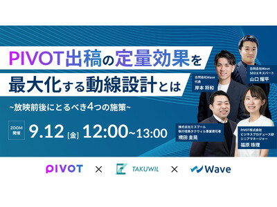 合同会社Wave(本社:神奈川県神奈川区、代表:岸本将和)は、PIVOT株式会社、株式会社エスプールとともに、2025年9月12日(金)にオンラインセミナーを共催いたします。