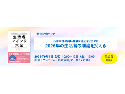 生活者視点をベースにマーケティングとプロモーションを提案する株式会社クレオ(本社:東京都千代田区、代表取締役社長:横井 司)は、『生活者マインド大全2026』の発刊を記念して2025年9月1日(月)~2025年9月12日(金)の2週間にわたり、無料オンラインセミナー「不確実性の高い社会に適応するために 2026年の生活者の潮流を捉える」を開催いたします。