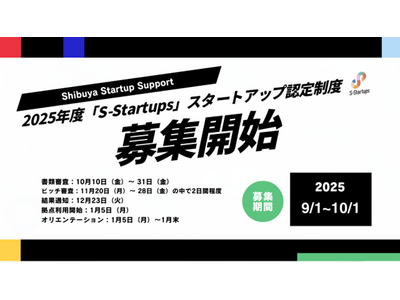 渋谷区(区長:長谷部健)は、スタートアップ支援「Shibuya Startup Support」の一環として、令和7(2025)年9月1日より、渋谷から世界に成長するスタートアップ企業を認定・支援する「S-Startups」の認定企業の募集を開始します。本プログラムは、渋谷区外郭団体である渋谷国際都市共創機構(東京都渋谷区、代表理事:森川博之、以下、「SII」)が運営します。