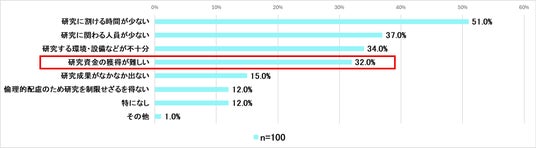 「研究をスタートまたは継続するうえで大変なこと」を聞く質問に対して