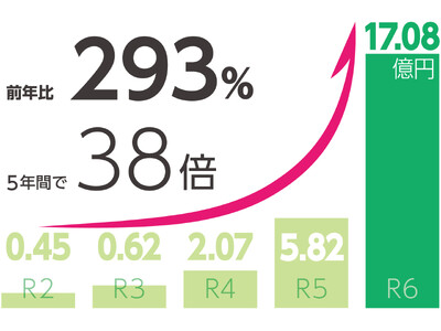 令和6年度の草加市ふるさと納税寄附額は17億757万800円で、伸長率はプラス193.29%。寄附件数は前年比3.22倍の12万885件となりました。県内のランキングでは他にも、当社が業務支援する北本市が2位・上尾市が5位・東松山市が8位となるなど、快挙を成し遂げています。