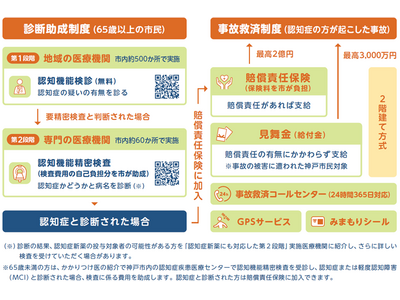 ・診断助成制度(2019年1月~)は、65歳以上の高齢者が医療機関での2段階の認知症診断を自己負担ゼロで受診できる“全国初”の制度です。