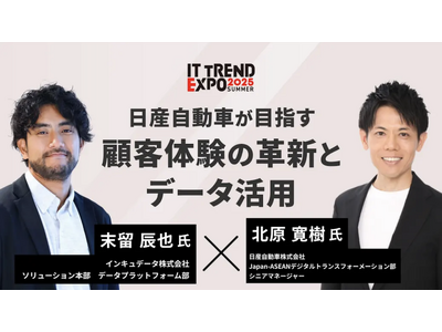 インキュデータ株式会社(本社:東京都港区、代表取締役社長 兼 CEO:町田 紘一、以下「インキュデータ」)は、2025年9月2日(火)~9月5日(金)に開催される、オンライン展示会「ITトレンドEXPO2025 Summer」において、日産自動車株式会社(以下「日産自動車」)と共にセッション登壇いたします。