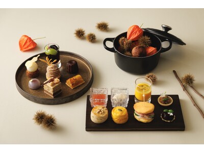すべてのアイテムをグルテンフリーで仕立て、おいしさを損なわずに軽やかな味わいを実現しました。キタノに流れる和の文化も取り入れた、季節毎のシリーズの最新作は、ブドウや栗、さつま芋など季節ならではの食材がさまざまに表現され、五感で楽しめる「秋色のアフタヌーンティー」。