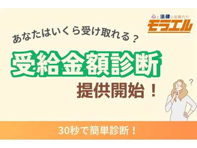 サポートメイト株式会社(本社:大阪府大阪市北区梅田1-2-2大阪駅前第2ビル、代表取締役:大井大輝)は、退職代行と公的給付の申請支援をワンストップで提供する「心と法律の退職代行モラエル」(以下、モラエル)において、公式LINE上で受給見込みの目安を確認できる「かんたん受給額診断」を公開しました。スマートフォンから数問に答えるだけで、傷病手当や失業給付など、該当しうる制度と概算受給額の目安が表示されます。