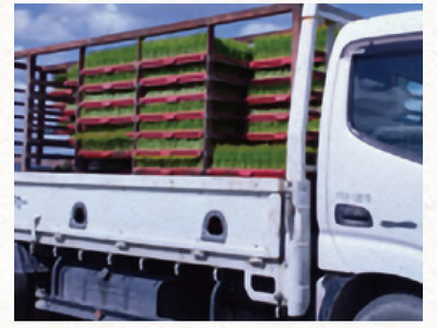 苗の運搬車両として、平ボディ車を安定供給 できる体制を構築しました。また、それまでは 納屋に一括納品された苗を農家様が自分たちで田んぼに配置していましたが、佐川急便が輸送し、田んぼの指定場所に配置するチャーター輸送をご提案。農家様は 本業である農作業に専念でき、喜んでいただくこと ができました。