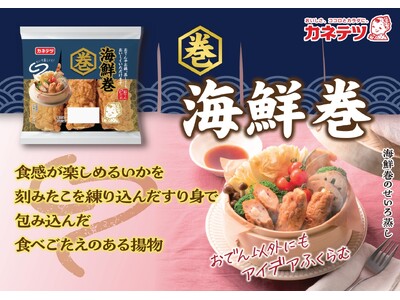 「巻物シリーズ」は、おでんやお鍋の食材として人気の練り製品です。今回、定番の「チーズ巻」「ウィンナー巻」をリニューアル。さらに新商品「海鮮巻」も加わってバリエーションが充実しました。