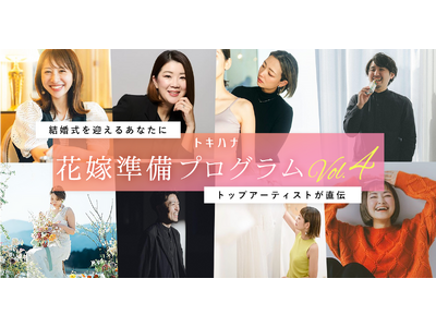 LINEでできる式場探し『トキハナ(https://tokihana.net/)』を運営する株式会社トキハナ(本社:東京都港区、代表取締役社長:安藤 正樹、以下 「トキハナ」)は、ウエディングの各界を代表するトップアーティスト6名とコラボレーションし、花嫁の結婚式準備をサポートする「花嫁準備プログラムvol.4」を開催します。