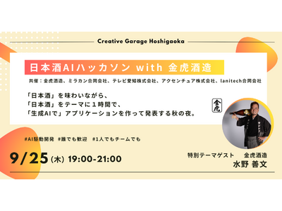 Techspire the future を掲げる lanitech合同会社(代表取締役CEO:西脇靖紘、以下lanitech)は、運営する共創型コワーキングスペース「クリエイティブガレージ星が丘(以下、クリガレ)」において、AI駆動開発を楽しむイベント、日本酒AIハッカソン with 金虎酒造 を開催します。