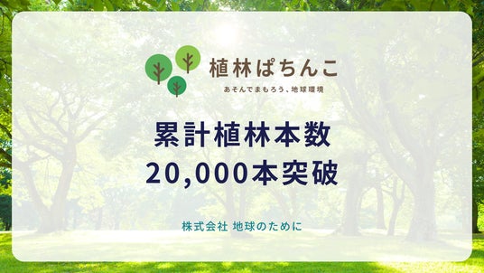 株式会社 地球のために(本社:大阪府大阪市、代表取締役:内藤 勝好)が提供するパチンコホール向けCSR事業「植林ぱちんこ」は、サービス提供開始から通算で20,000本分の植林活動への寄付を実施しました。
