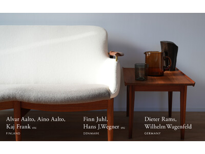 本展では、ドイツ(ディーター・ラムス、ヴィルヘルム・ワーゲンフェルド)、フィンランド(アルヴァ・アアルト、アイノ・アアルト、カイ・フランク)、デンマーク(フィン・ユール、ハンス・J・ウェグナー)ら、1930~1950年代のモダンデザイン黄金期を築いた巨匠たちの家具や雑貨を厳選し、