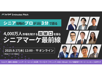 マーケティングプラットフォーム「アドクロ」を運営する株式会社ビズパ(以下、「当社」)では、広告・マーケティングに関心のある皆様を対象に、短時間プレゼン形式で各企業の最新プロモーション手法を紹介するオンラインイベント「シニア攻略のプロが3分で語る!シニアマーケティング最前線」を、2025年9月17日(水)12:00~13:00に開催いたします。