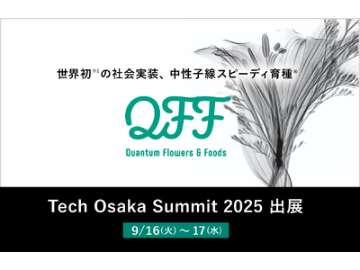 株式会社クォンタムフラワーズ&フーズ(本社:茨城県水戸市、代表取締役CEO:菊池伯夫、以下「QFF」)は、2025年9月16日(火)~17日(水)、グランフロント大阪(大阪市北区)で開催されるグローバルスタートアップイベント「Tech Osaka Summit 2025」に出展いたします。QFFは、自社の旗艦技術である「中性子線スピーディ育種(R)(非GMO)」の最新成果を発表し、産業界や研究機関との協業機会の創出を目指します。