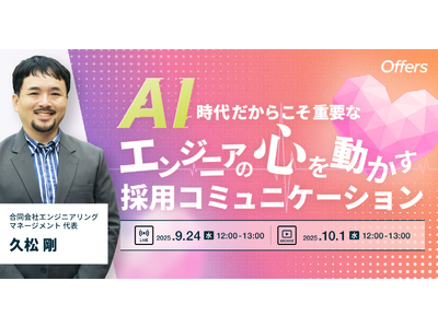 「AI時代だからこそ重要な、エンジニアの「心を動かす」採用コミュニケーション ~採用成功率を上げる、理論と実践に基づいたコミュニケーション・スカウト戦略~」を2025年9月24日(水)にライブ配信、10月1日(水)にアーカイブ配信いたします。