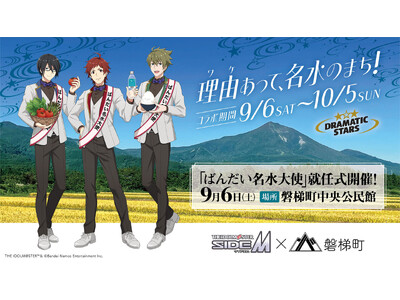 磐梯町(ばんだいまち)と株式会社バンダイは、同じ”ばんだい“という名前のご縁から、これまでに公式キャラクター「ロボばんじぃ」の制作協力など、さまざまな分野で交流を続けてきました。そうした関係のなか、「子どもの学び支援」や「地域創生」をさらに進めたいという両者の想いが一致し、2025年7月1日には「ばんだいサステナビリティ連携協定」を締結しました。この協定に基づく取り組みの一つとして、グループ会社が展開する人気IP『アイドルマスター』シリーズの中から、『アイドルマスター SideM』とのコラボレーションが実現。福島県出身の天道輝(てんどう・てる)がリーダーを務めるユニット『DRAMATIC STARS』が、「ばんだい名水大使」として磐梯町の名水をPRし、約1か月(9月6日(土)~10月5日(日))にわたり、さまざまな企画でプロデューサー(ファン)の皆様をお迎えします。