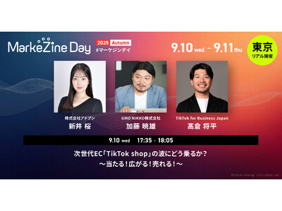 株式会社アドブシ(所在地:東京新宿区、代表取締役CEO:関口典史)は、2025年9月10日(水)に開催される国内最大級のマーケティングカンファレンス「MarkeZine Day 2025 Autumn」にて、GMO NIKKO株式会社およびTikTok for Business Japanと共同登壇いたします。