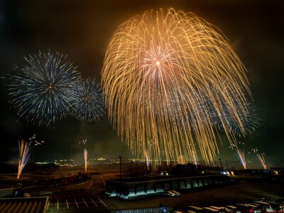 世界最大級の4尺玉(打揚高度800m、開花直径800m)、尺玉100発同時打を毎年実現。2025年は3尺玉2発同時打も実施。世界を驚かせる伝統の大花火!
