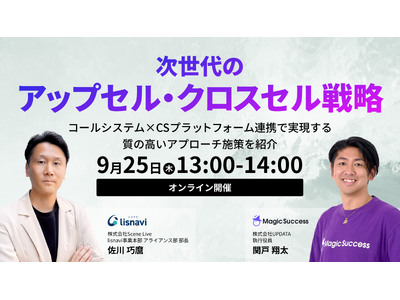 本ウェビナーでは、CSプラットフォーム「MagicSuccess」とコールシステム「lisnavi」を連携し、コールデータに法人データベースやサービス利用ログなどの様々なデータを組み合わせることで実現する、「データに基づいた効率的かつ質の高いアプローチ方法」をご紹介します。