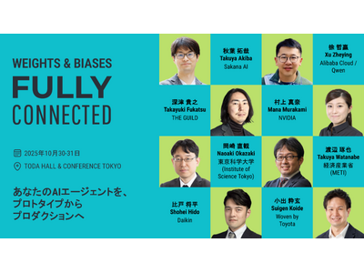 Weights & Biases Japan株式会社(以下、W&B Japan)は来る10月30日および31日に、年次開催のユーザーカンファレンスFully Connected 2025 Tokyoを開催します。本年で3回目を迎える本イベントは、昨年比1.5倍の規模で初めて2日間にわたり開催され、1日目は実践的なハンズオンワークショップ、2日目は著名なAI開発者・研究者による講演で構成されていまして、Sakana AI、NVIDIA、Woven by ToyotaなどのW&Bユーザー企業からご登壇を予定しています。