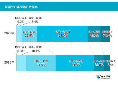※当社調べ(2025年9月現在、整備士の平均年間休日数を2022年と比較したデータとして)