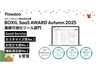 BUSINESS-ALLIANCE株式会社(所在地:東京都文京区、代表取締役:藤田健太郎)が開発・提供する「flowzoo(フローズー)」は、スマートキャンプ株式会社(以下スマートキャンプ)が今もっとも評価されているSaaSを表彰する「BOXIL SaaS AWARD Autumn 2025」の業務可視化ツール部門で「Good Service」「カスタマイズ性No.1」「お役立ち度No.1」「機能満足度No.1」に選出されました。