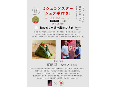 ミシュランスターシェフが手づから調理した具材を使ったミシュランおむすびを提供!第14弾は 『Chi-Fu』(西天満)東浩司シェフが手がける「鮭のピリ辛坦々風おむすび」