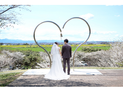 高尾さくら公園で満開の桜に囲まれた新郎新婦(イメージ)