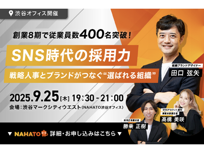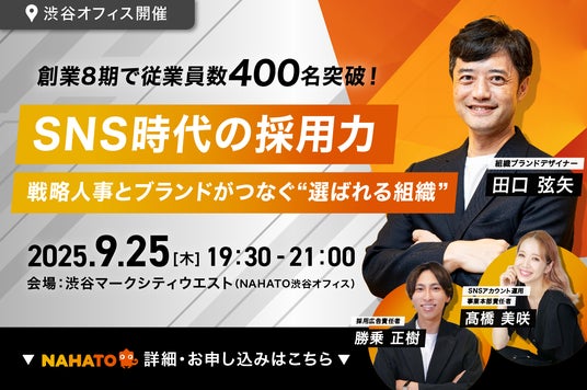 株式会社ナハト(所在地:東京都渋谷区、代表取締役:安達友基、以下ナハト)は、2025年9月25日(木)にオフラインイベント『SNS時代の採用力 戦略人事とブランドがつなぐ“選ばれる組織”』を開催することをお知らせします。