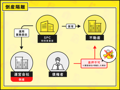 機関投資家などのプロも活用する「倒産隔離」スキームを採用することで運営会社と投資家の皆様の資産を切り離します。運営会社が倒産した場合においても投資家の皆様の資産を保護します。